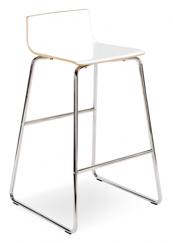 Cafe VII baarituoli tyylikkäällä kromatulla metallirungolla ja valkoisella laminaatti istuimella.