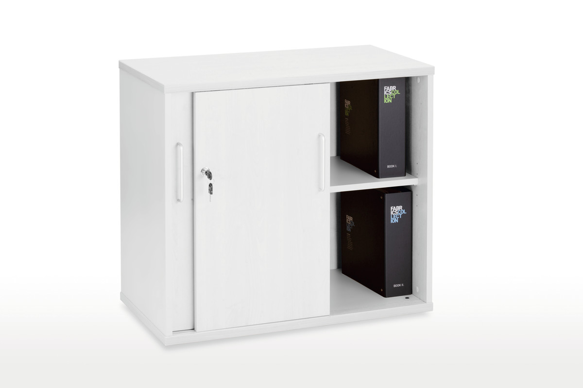 Liukuovikaappiin mahtuu hyvin mapit, kansiot ja muut toimiston tavarat.