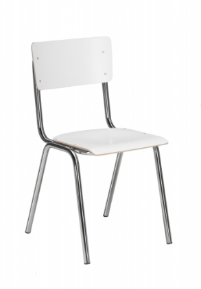 Istuin ja selkänoja valkoista laminaatia